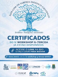 O Grupo de Estudo e Pesquisa Tecendo Redes Cognitivas de Aprendizagem (G-TERCOA/CNPq/UFC) informa que os certificados do IV Workshop G-TERCOA – Ensino, Pesquisa e Extensão: elos com os saberes didático-científicos já estão disponíveis para acesso e download.