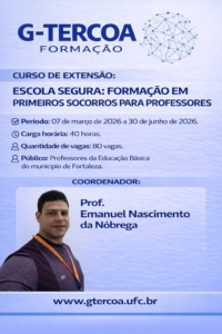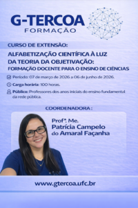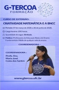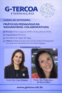 Data da publicação: 12 de janeiro de 2026 Categoria: Editais, NotíciasO Grupo de Estudo e Pesquisa Tecendo Redes Cognitivas de Aprendizagem (G-TERCOA/CNPq-UFC) divulga os cards oficiais dos cursos de extensão ofertados no primeiro semestre de 2026, contemplados no Edital nº 01/2026. As formações são voltadas para docentes da Educação Básica, estudantes de Pedagogia e demais interessados em ampliar sua formação com práticas pedagógicas inovadoras, colaborativas e socialmente comprometidas.