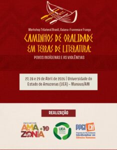 Data da publicação: 27 de abril de 2026 Categoria: 2026, NotíciasO Grupo de Estudos e Pesquisa Tecendo Redes Cognitivas de Aprendizagem (G-TERCOA/CNPq/UFC) tem a satisfação de divulgar a participação no Workshop Trilateral “Caminhos da Oralidade em Terras de História: Povos Indígenas e as Violências”, que será realizado no período de 27 a 29 de abril de 2026, na Universidade do Estado do Amazonas (UEA), em Manaus.