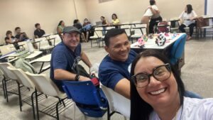A atividade foi conduzida pelos professores Me. Arnaldo Dias e Me. Fredson Rodrigues Soares, doutorandos do Programa de Pós-Graduação em Ensino (RENOEM) e integrantes do G-TERCOA/CNPq-UFC. A oficina contou com a participação dos alunos do Programa Institucional de Bolsa de Iniciação à Docência (PIBID) – Pedagogia da FACED/UFC e da Profa. Dra. Maria José Barbosa. Os alunos vivenciaram práticas interativas de construção geométrica com o aplicativo Sólidos RA, aliado à técnica do origami.