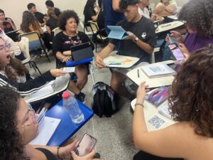 O PIBID alfabetização do curso de Pedagogia -UFC é coordenado pela Profa. Dra. Maria José Costa dos Santos e pela Profa. Dra. Maria José Barbosa, tem como propósito inserir o licenciando no ambiente escolar ainda na primeira metade do curso, estimulando a observação e a reflexão sobre a prática docente no contexto das escolas públicas de Educação Básica. Nesse sentido, a oficina proporcionou aos participantes uma oportunidade de ampliar o olhar sobre o ensino da Matemática, explorando recursos tecnológicos e metodologias inovadoras.